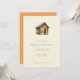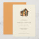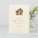 This wedding invitation features a charming log cabin illustration with warm earthy tones and soft lighting, creating a cosy and inviting atmosphere. The design uses a clean serif font for the text, arranged in a balanced layout on a neutral beige background that highlights the whimsical yet refined style. Perfect for couples seeking rustic elegance, this invitation sets the tone for a memorable celebration with its semi-realistic representation and gentle colour palette.