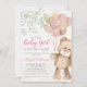 Rustic Watercolor Bear Balloons - Girl Baby Shower Invitation