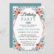 Rustic Watercolor Blue Floral 50th Birthday Party Invitation