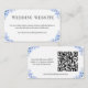 Your wedding guests can RSVP online or find out all the details of your wedding day with this charming blue floral wedding website card. The design features pretty blue floral elements in a watercolor style in the corners, and was created especially to match an existing wedding suite which you can see below as a Collection. The back of the card has a QR code which you can customise with your own wedding website link so your guests can also be up to date with all of your wedding preparations, and of course find all the important information they will need to know for your big day.