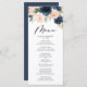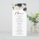 Rustic Watercolor Blush and Navy Floral Wedding Menu