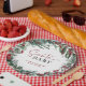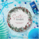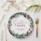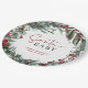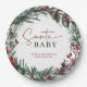 A Santa Baby is coming to town! A budget watercolor Christmas baby shower paper plates featuring winter berries, pine cones and greenery foliage.