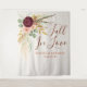 Create a stunning focal point for your celebration with this Fall in Love Bridal Shower Backdrop Wall Tapestry, part of the elegant Fall in Love Collection by Porch And Gable Design. Designed with a romantic autumn palette, it showcases watercolor fall florals, deep burgundy chrysanthemums, soft blush pink roses, eucalyptus greenery, golden leaves, and dried pampas grass arranged in a lush, seasonal display.