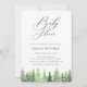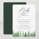 Rustic watercolor forest trees, Baby shower invitation. Elegant typography design style template with coordinating dark forest green colour backing.