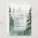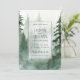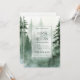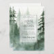 Delight your guests with a beautiful wedding invitation, featuring a soft watercolor misty mountain forest in subtle shades of green, in an ethereal nature style. Elegant serif typography with sweeping swashes, is combined with a modern script. Forest scene on the back. Available in print, as a digital download, or both.