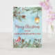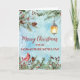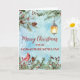 Merry Christmas for godmother card in rustic watercolor pattern and watercolor flowers and foliage.