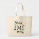 Rustic Watercolor Greenery Square Wreath Monogram Large Tote Bag
