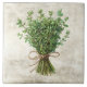 Rustic watercolor graphic design of watercolor herbs tied with a twine bow. Perfect for your country French or cottage farmhouse kitchen. Faux texture background.