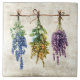 Rustic watercolor graphic design of watercolor herbs and dried flowers tied with a twine bow. Perfect for your country French or cottage farmhouse kitchen. Faux texture background.