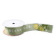 Rustic watercolor lemons ribbon on a green background with a thank you message. A stylish wrapping ribbon for wedding party favours, baby shower favour, or any other type of thank you gift.