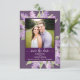 This wedding save the date card is simple, rustic, elegant, and beautiful. It features your photo in a white frame surrounded by a bevy of hand painted lilac flowers on a dusty plum purple background. The title reads: Save the Date in lacy script calligraphy with room for the names of the couple, the date and location. The back has a small bouquet tied with a white bow. Wonderful way to let your friends and family know about your upcoming wedding.