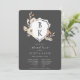 Contemporary rehearsal dinner invitation features the organic beauty of natural coloured watercolor dried florals and monogram crest.
