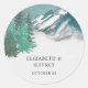 Rustic Watercolor Mountains Pine Winter Wedding Classic Round Sticker