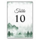 Rustic Watercolor Mountains Pine Winter Wedding Table Number