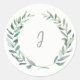 Elegant rustic green white watercolor leaves monogrammed sticker.