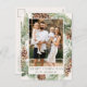 Elegant holiday postcard featuring a watercolor wreath of pine cones, pine boughs, and lush greenery with a light cream background. "Merry Christmas" is displayed in dark green lettering. Personalise the front of the pine cone holiday postcard with your vertical photo and family name. The card reverses to display your return address, additional photo, and your personal message .