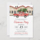 Rustic Watercolor Red Truck House Christmas Party Invitation