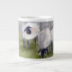 This mug features a watercolor painting print of grazing sheep by artist D. Carrasco.