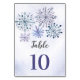 Rustic Watercolor Snowflakes Blue Winter Wedding Table Number