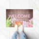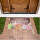 Pink, lavender, orange, and pale green watercolor cactus and succulents on a with a rustic peachy brown background and fairy lights. Some images from vecteezy.com.