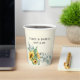 Rustic and elegant watercolor sunflower and eucalyptus on white paper cups.