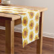This stylish table runner features a pattern of rustic watercolor sunflowers in yellow and brown.
