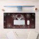 Add seasonal charm to your workspace with this Red Rustic Watercolor White Reindeer Christmas Desk Mat. Showcasing a graceful white reindeer framed by a filigree wreath, the design is set against a cosy wooden background with softly falling snowflakes. A cheerful “Happiest Holidays” message in modern typography completes the look, blending festive warmth with a stylish winter theme. Both practical and decorative, this desk mat brings holiday spirit to your daily routine and makes a delightful addition to holiday home office accents.