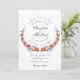 Rustic and romantic wedding invitation featuring watercolor wildflowers arranged in a crest.