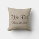 This rustic throw pillow has an illustrated linen/burlap background, so that it has the textured look, but is still soft to the touch. This cushion says "We Did" and the wedding date of the newly married couple on the front, and "Mr and Mrs" with their new last name on the back, making it a great accent pillow for the wedding sweetheart table, and the newlyweds bedroom or living room after the wedding.