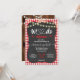 Rustic country themed "We do" bbq barbecue rehearsal dinner or Engagement invitations. Features a red and white gingham checked table cloth, chalkboard, string of lights and the back is a dark barn wood background. Need help, just let me know at tkatz@me.com