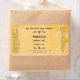 A rustic weathered paper style label with black typeface for soaps, cosmetics, and other toiletries. It can be customised with your ingredients, directions, and business information.