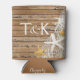 This unique, rustic, beachy, monogram Beer can cooler features beautiful starfish caught in fisherman's netting against a background of brown weathered wood. Comes in 5 colours: brown, pink, aqua, blue and grey. Click the CUSTOMIZE IT button to add text. Matching wedding invitations, save the dates, RSVPs, envelopes, beer paper plates, stickers, postage stamps, coasters, magnet favours & more are available! For questions or if you would like other items featuring this design, please contact the designer: cheryl@cheryldanielsart.com. "Rustic Weathered Wood Starfish Netting" design by Cheryl Daniels © 2015.