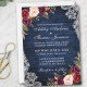Rustic Wedding Blue Wood Burgundy Floral Lace Invitation