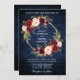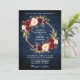 Rustic Blue Wood Watercolor Burgundy Floral Wreath Wedding Invitation