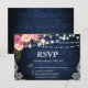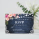 Rustic Wedding Blue Wood Floral Lights Lace RSVP Card