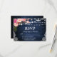 Rustic Wedding Blue Wood String Lights Lace Watercolor Pink Floral RSVP Card