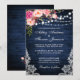 Rustic Blue Wood String Lights Lace Pink Blush Watercolor Floral Wedding Invitation