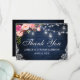Rustic Wedding Blue Wood Pink Floral Jar Lights Thank You Card