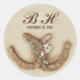 shabby rustic burlap background stickers with horseshoe couple