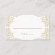 This rustic style wedding table assignment card features a gold hand drawn paisley pattern on all four corners and brown text.