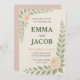 This rustic wedding invitation beautifully blends natural elegance with soft romance, featuring a palette of sage green, blush, and cream. Delicate watercolor roses and eucalyptus leaves frame the design, evoking a countryside charm that feels timeless and refined. The textured cream background adds warmth and authenticity, reminiscent of handmade paper. Elegant serif typography and subtle blush accents complete the look, making this invitation perfect for outdoor, garden, or barn weddings with a romantic rustic theme.