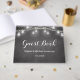 Rustic Wedding Guest Book, String Lights Mason Jar Guest Book with Chalkboard Black White background, Couple Initials. You can also use this for rehearsal dinner, engagement, reception, bridal shower, bachelorette. Use personalise this template option to change the text. Check out our store collection below for matching items. For any assistance in changing text, use message option below our store name.