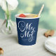 Navy Blue, Mr. and Mrs. Modern Rustic style personalised wedding Paper Cups