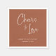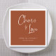 Add a touch of rustic charm to your wedding day with our personalised wedding napkins. These napkins feature a beautiful hand-lettered "cheers to love" phrase in white ink, as well as your names and wedding date. The terracotta background design is perfect for a rustic wedding, and the napkins are suitable for a variety of occasions, including bridal showers, engagements, and anniversaries.