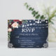 Rustic Wedding Blue Wood String Lights Lace Watercolor Burgundy Marsala Blue Floral RSVP Card with meal choice