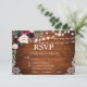Rustic Wedding Wood String Lights Lace Watercolor Burgundy Marsala Blue Floral RSVP Card with meal choice