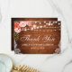 Rustic Wedding Wood Watercolor Coral Floral String Lights Lace Thank You Card