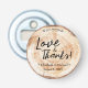 Personalise these unique round, wedding "Love and thanks" thank you bottle openers. It features a printed wood grain cut disc, perfect for your rustic wedding. Say thank you with a useable wedding souvenir.
