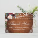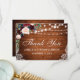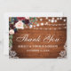 Rustic Wedding Wood Lights Lace Floral Thank You Card