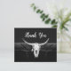 This folded budget thank you card features a rustic western black and white bull cow skull country rodeo cowboy wedding theme. Farmhouse style, old wild west vintage antique, cool, trendy, modern farm animal customised design. Image copyright Marg Seregelyi Photography.